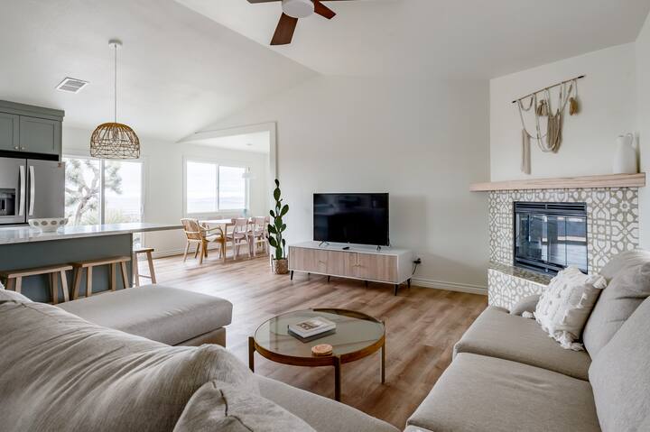 Come slow down in the desert in this modern oasis right in the heart of downtown Joshua Tree. Walking distance to farmers market, downtown restaurants, art galleries, and shops. Or just restore in this incredibly well-styled family room 🙂