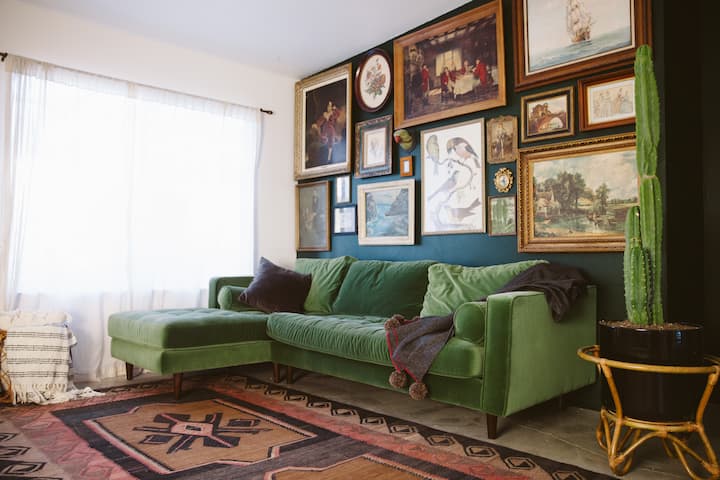 If you’re all about eclectic stories, this desert Airbnb is for you! Seven Arches has been curated with products from a variety of interesting places and spaces across the US, Morocco, Mexico City + Oaxaca! Very worldly + very beautiful!