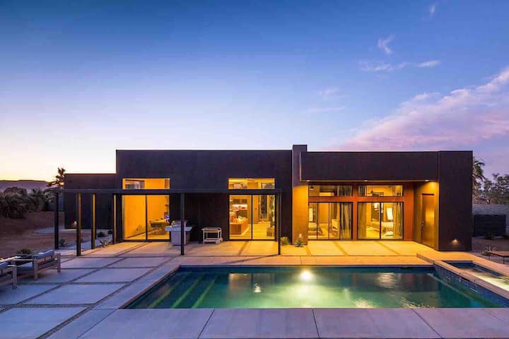 Oh-so new + modern! This is a brand new desert home – designed, furnished + decorated with love. The pool and connected in-ground hot-tub are amazing for relaxing during any season!