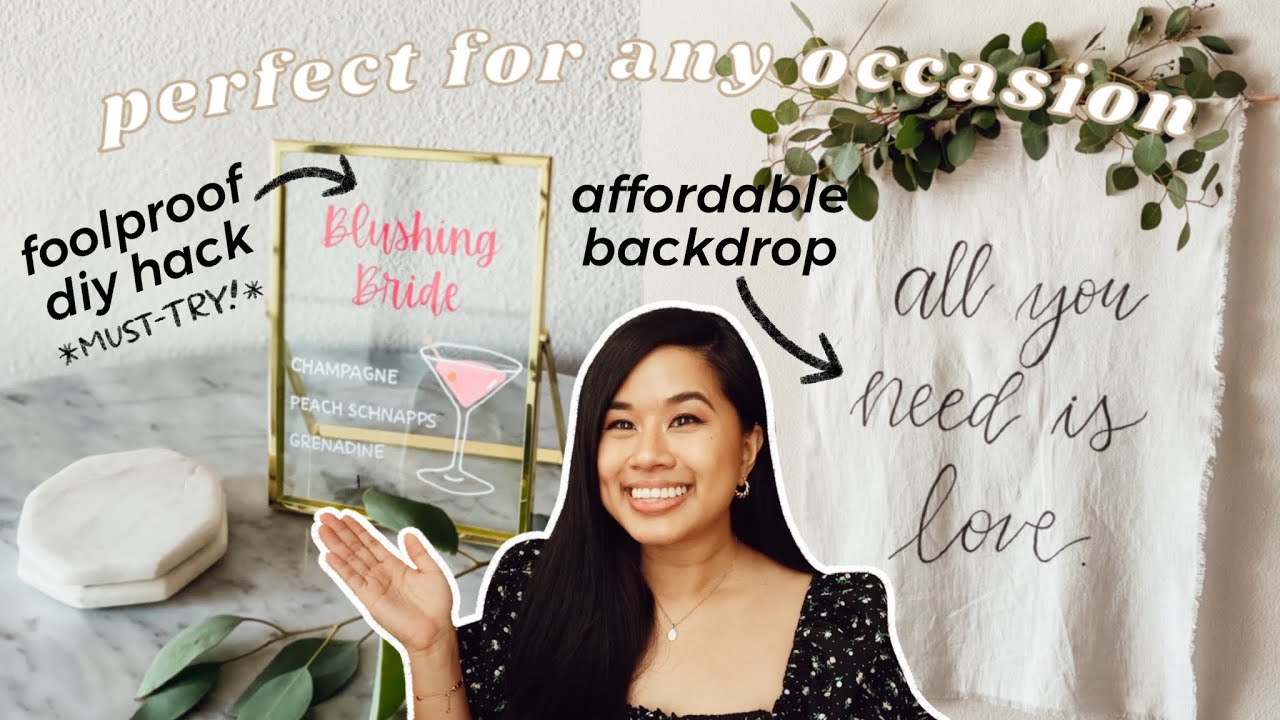 Today I’m showing you how to make GORGEOUS decorations for your next event, wedding, birthday party, etc. Summer is in full swing and it calls for plenty of celebrations with friends and family. We’re creating a beautiful glass sign with a genius, quick and easy calligraphy hack.